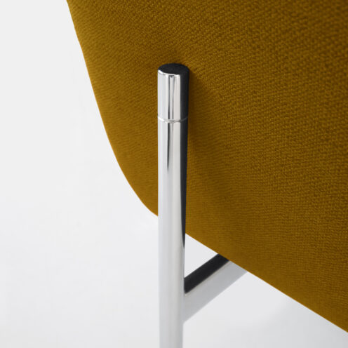Metal frame with multi-density structural foam cladding. CNC routed composite wood panels frame. Elastic webbing deck. Metal legs in Chrome or Bronzato. Black Nickel metal legs are available with a surcharge. Solid wood legs with low gloss water based polyurethane clear coat. Wood legs available in Oak or Black Oak. Down feather back cushions sold separately. Seat depth without back cushions is 25.5". Seat depth with back cushions is 20".